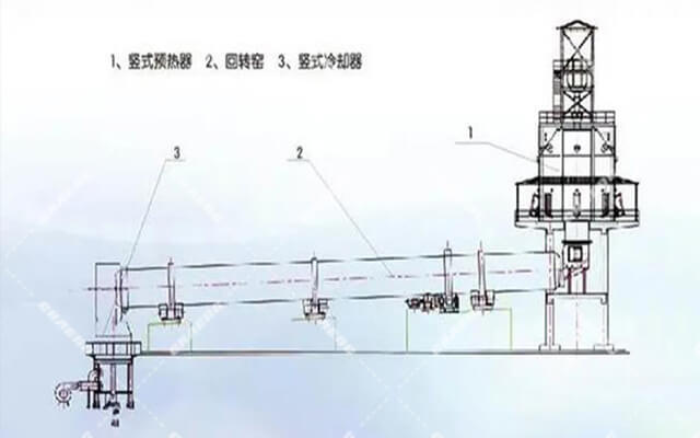 物料從窯尾(筒體的高端)進(jìn)入窯內(nèi)煅燒。由于筒體的傾斜和緩慢的回轉(zhuǎn)作用,物料沿圓周方向翻滾又沿軸向(從高端向低端)移動(dòng),繼續(xù)完成分解和燒成的工藝過(guò)程,經(jīng)過(guò)物理和化學(xué)變化,最后,生成熟料經(jīng)窯頭罩進(jìn)入篦冷機(jī)冷卻。燃料由窯頭噴入窯內(nèi),燃燒產(chǎn)生的廢氣與物料進(jìn)行熱交換后,由窯尾導(dǎo)出。