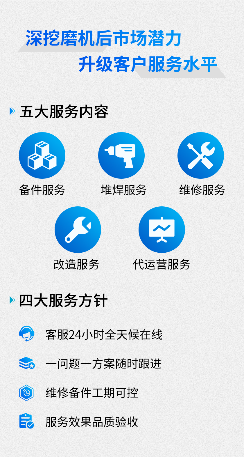 隨著年底的接近,為了更快解決客戶的維修需求,新鄉(xiāng)長城持續(xù)踐行“客服24小時全天候在線、一問題一方案隨時跟進、維修備件工期可控、服務(wù)效果品質(zhì)驗收”四大服務(wù)方針,嚴格考核團隊服務(wù)效果,梳理從營銷到技術(shù),再到備件生產(chǎn)、質(zhì)檢、拆裝、堆焊/維修/升級/運營等各服務(wù)團隊標準化,快速、高效解決客戶問題。