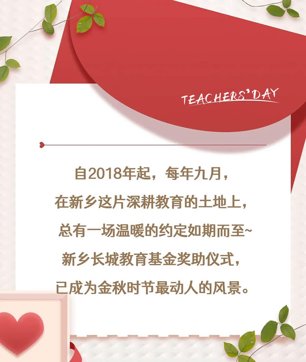 9月9日上午9點,輝縣市教育高質(zhì)量發(fā)展智庫領(lǐng)航座談會暨慶祝第41個教師節(jié)座談會隆重召開。借助政府搭建的平臺,新鄉(xiāng)長城再次為當?shù)貎?yōu)秀師生頒發(fā)獎助金,這不僅僅是一場儀式,更是新鄉(xiāng)長城八年來對教育事業(yè)始終如一的堅守。