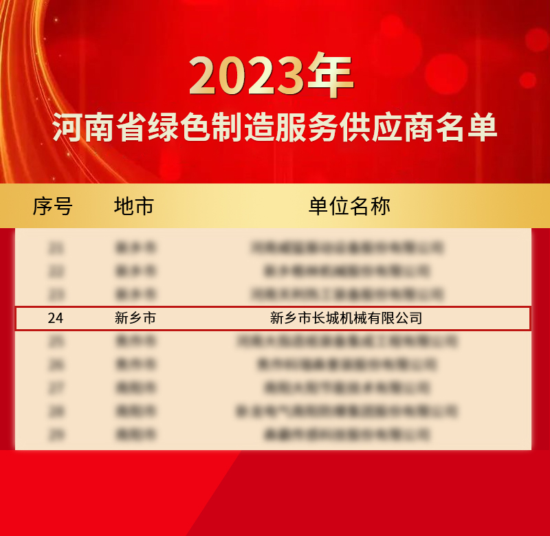 近期,河南省第一批綠色制造服務(wù)供應(yīng)商評審結(jié)果進行公示,新鄉(xiāng)長城成功上榜!這是新鄉(xiāng)長城在綠色低碳發(fā)展領(lǐng)域獲得的又一殊榮。