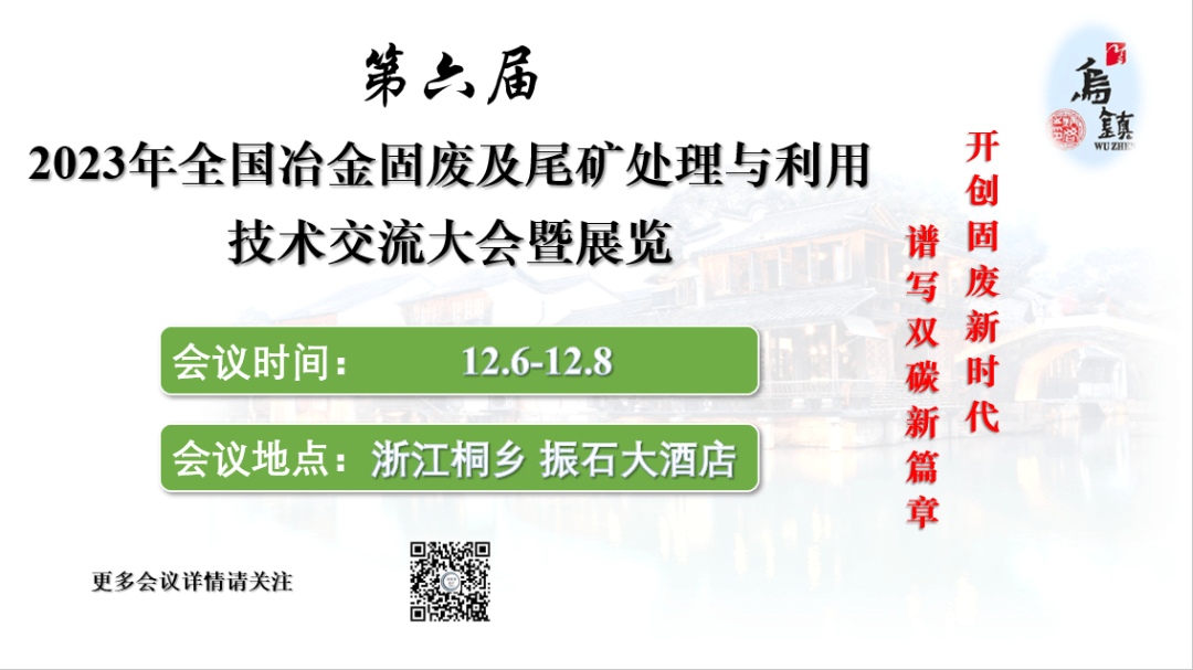 2023第六屆全國冶金固廢及尾礦處理與利用技術(shù)交流大會將于12月6-8日,在浙江桐鄉(xiāng)振石大酒店召開!新鄉(xiāng)市長城機械有限公司參加本次大會,展位號:5號,歡迎業(yè)內(nèi)代表前來交流!