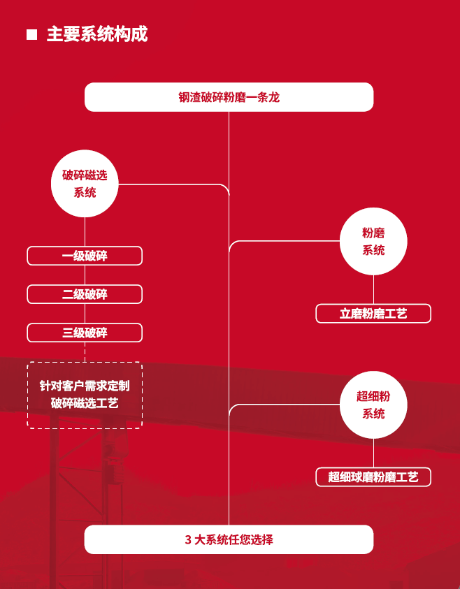 新鄉(xiāng)長城根據(jù)其鋼渣各階段特性,開發(fā)出破碎磁選、制粉、超細粉三大工藝系統(tǒng)處理鋼渣,能有效提高鋼渣利用率及資源化利用的附加值。